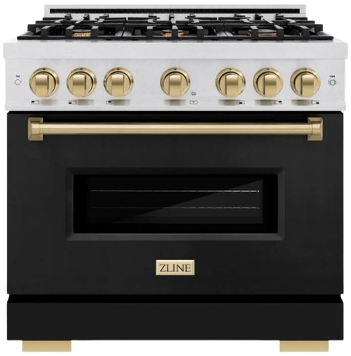 Luxury isn’t meant to be desired - it’s meant to be attainable. The ZLINE Autograph Edition 36 in. 5.2 cu. ft. Classic Dual Fuel Range with 6 Burner Gas Cooktop and Electric Convection Oven in Satin Stainless Steel with Black Matte Door and Champagne Bronze Accents (CDRSZ-BLM-36-CB)Read More